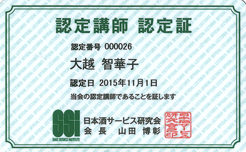 NPO法人日本酒サービス研究会「日本酒学講師」取得