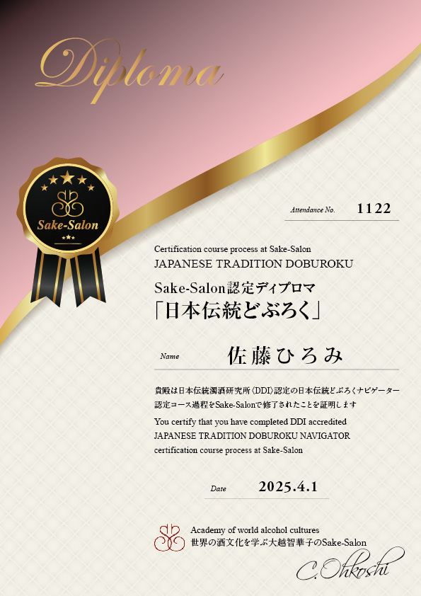◉Sake-Salon認定ディプロマ(受講者全員)が授与されます。