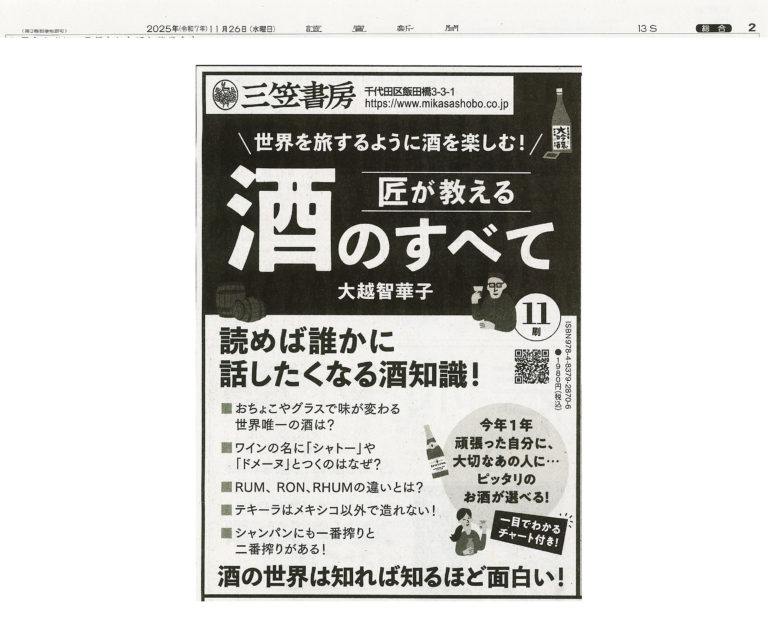 『大人のたしなみ お酒の教養』(祥伝社 新書)2025年12月25日発売 新書版1,100円(税込) 2021年11月に発行した『酒のすべて』に次ぐ2冊目を執筆いたしました。今回はビール・ワイン・日本酒について、それぞれ […] -